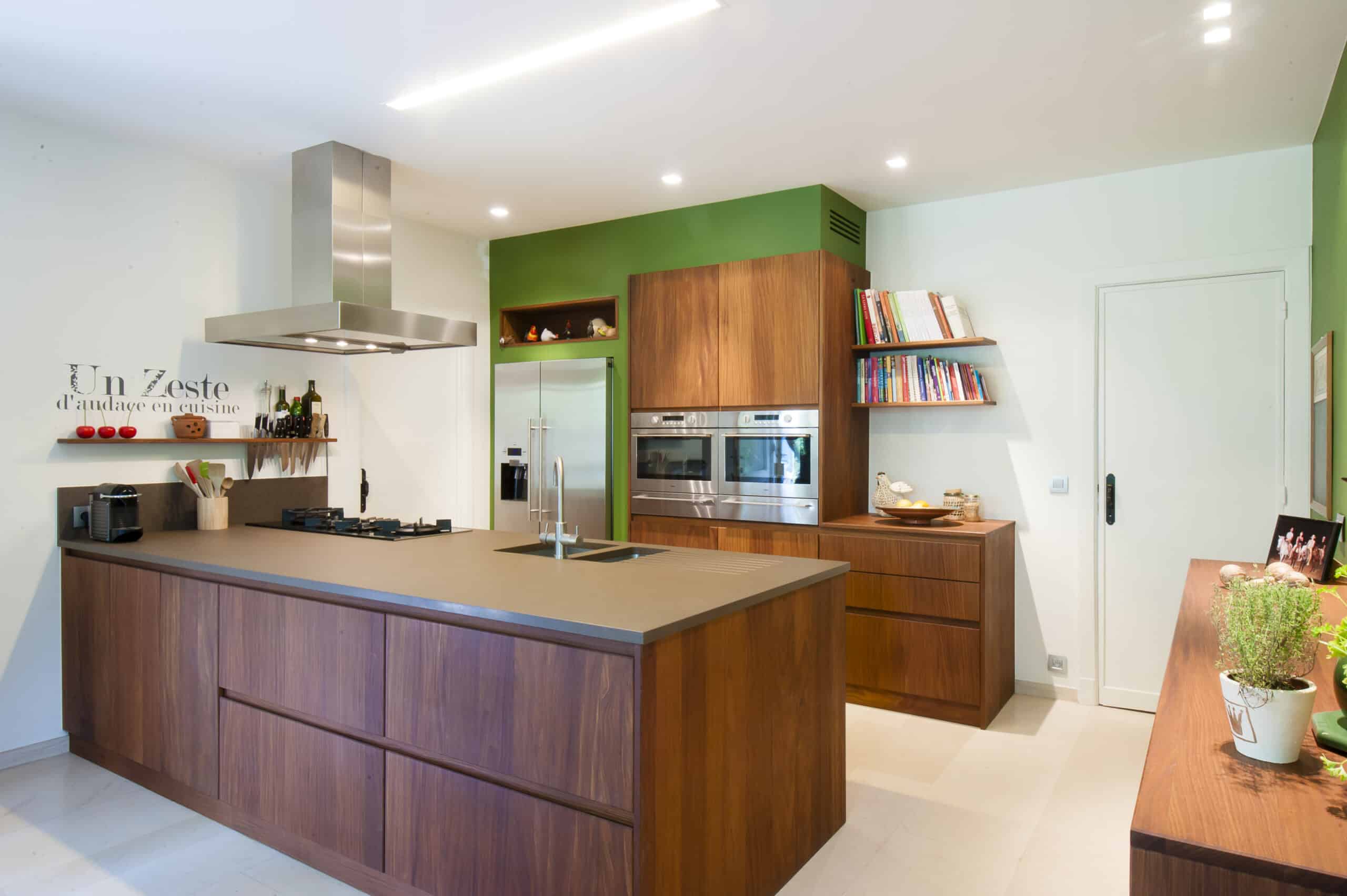 Plaats kasten van vloer tot plafond en benut de volledige hoogte van je keuken. Gebruik ze om je koelkast, combi-oven of opbergruimte in onder te brengen. Voorzie praktische binnenlades in plaats van verschillende afzonderlijke fronten.